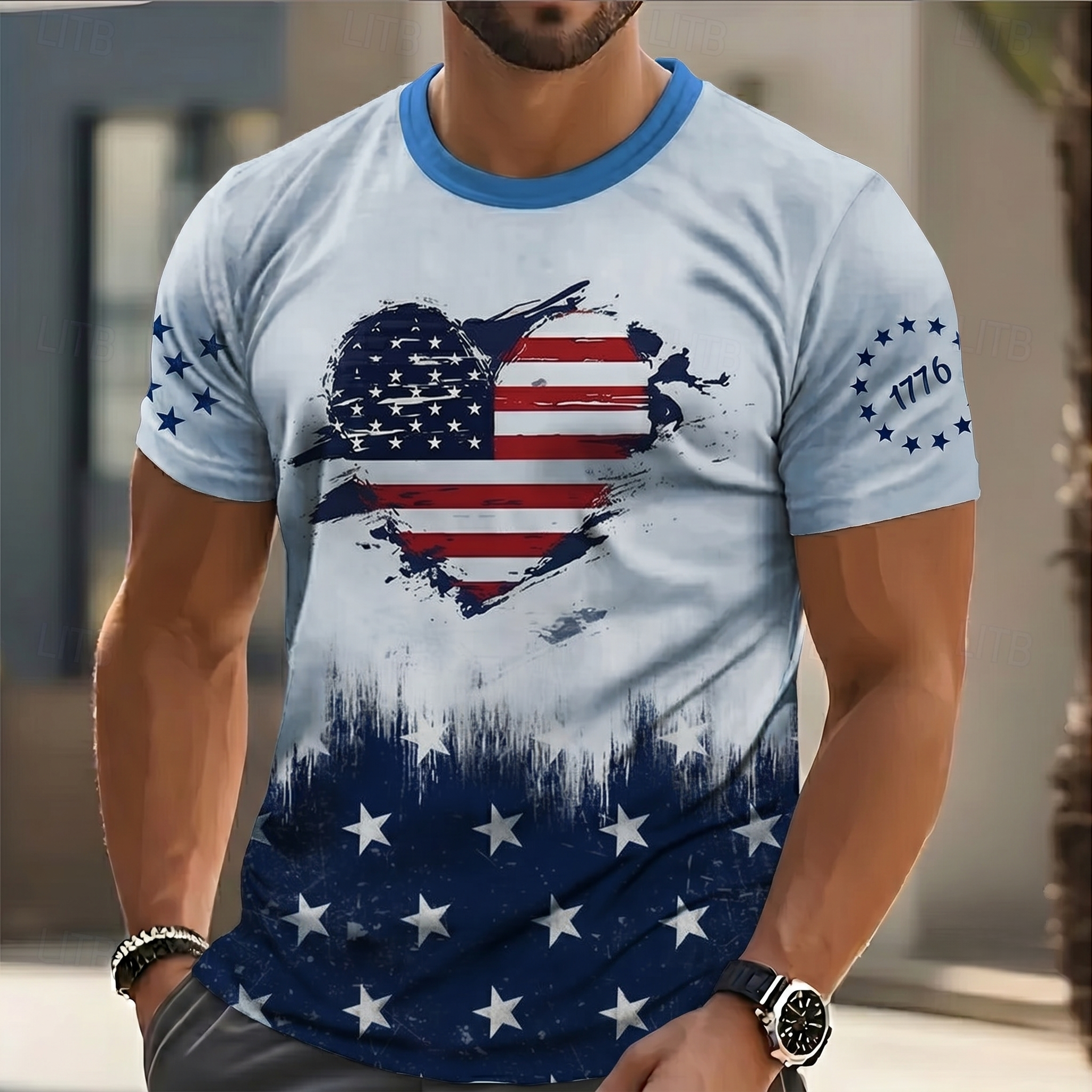 The distressed USA flag print and 13-star 1776 emblem aren’t just graphics—they’re a celebration of American history. Bold, eye-catching, and instantly recognizable, this polo turns heads on every tee box, letting you stand out while staying true to your values.